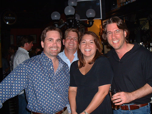 But as early 2009 whizzed by and my travel plans went left unmade, I realized I was procrastinating for a reason. I was trying to guess how I’d feel on the big day. I was imagining my own future state of mind. Stupid idea. Speculating about the future is risky. Understanding one’s current mood and its relationship to external factors is also imprecise. Throwing the two together was…well, stupid. Several months ago, past-me imagined future-me on October 16, 2009, and did not like what she saw: Me wandering around alone at Bouchercon; sitting at my signing table, saying goodbye to the last person in my modest line as the crowd waiting to see the author next to me tried to mask its pity; sobbing into my martini at the bar as I realized I was officially half way to eighty, well over a third of the way to dead. Bummer, huh? Turns out past-me sucks at both remembering the past and predicting the future. As Bouchercon approaches, I find myself recalling not those past moments of humble pie (almost) every rookie writer experiences at Bouchercon -- meandering around with a hotel map and a conference brochure as the seasoned vets exchange enthusiastic and kissy welcomes and hold court at the bar. Instead, my mind is flooded with good memories of friendships formed and a love of writing shared: the Reacher Creature parties; that amazing panel in 2006 with Ken Bruen, Laura Lippman, and fellow Ratis, Cornelia Read and Zoe Sharp; the night these guys became my pals and we smiled like people in a toothpaste ad: